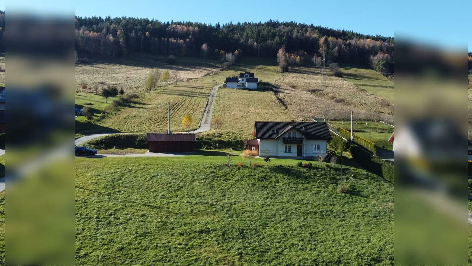 Położenie działki, bez bliskiego sąsiedztwa, zapewnia prywatność i wyjątkowo przyjemną przestrzeń do spędzania czasu na zewnątrz.